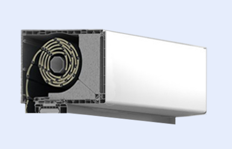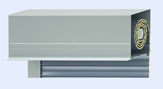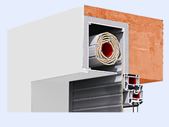 Ces coffres de forme carrée sont placés dans le « creux » du linteau, sous linteau et contre linteau à la fois. Ils s’intègrent entièrement dans la maçonnerie, tout en étant séparés d’elle sur toutes les faces par des inserts/intercalaires en matériau isolant. La trappe de révision, le seul élément visible, peut être thermolaquée de la même couleur que les coulisses.