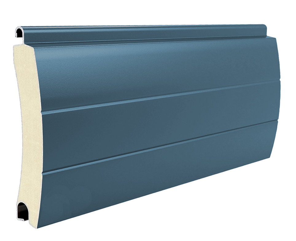 Tablier lames aluminium double paroi intégrant une couche de mousse polyuréthane